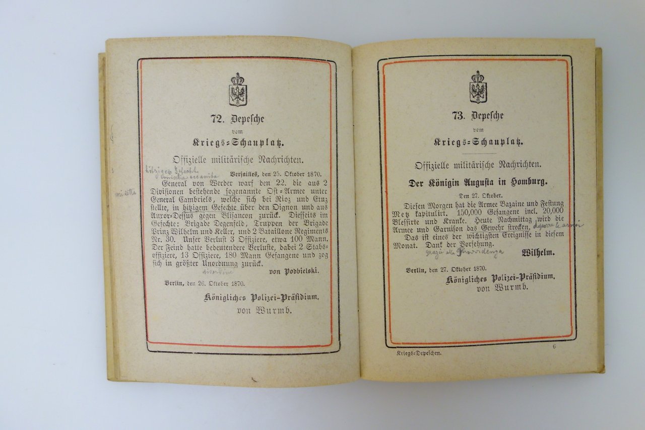 KRIEGS-DEPESCHEN 1870-1871 KONIGLICHEN POLIZEI-PRASIDIUMS BERLIN STRASBURG 1875
