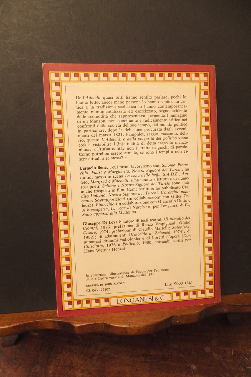 L'ADELCHI O DELLA VOLGARITA' DEL POLITICO | Libri antichi e moderni | CARMELO BENE - GIUSEPPE DI LEVA