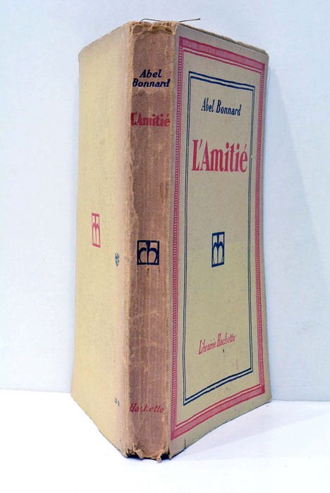 188 pages. 3 feuillets. (19x12cm). Broché. Couverture imprimée brunie avec petites taches éparses. Dos avec déchirures marginales sans gravité. Coins émoussés. Publié en 1928 à Corbeil, cet ouvrage d'Abel Bonnard, écrivain et poète affilié au mouvement de la Nouvelle Revue Française, explore les nuances et les complexités de l'amitié à travers une prose riche et poétique. Dans le contexte de l'entre-deux-guerres, une période marquée par une quête de sens et de renouveau, l'auteur s'attache à dépeindre les interactions humaines avec une sensibilité qui résonne encore dans le monde contemporain. Papier brunie avec petites atches éparses sans gravité. Bien conservé.
