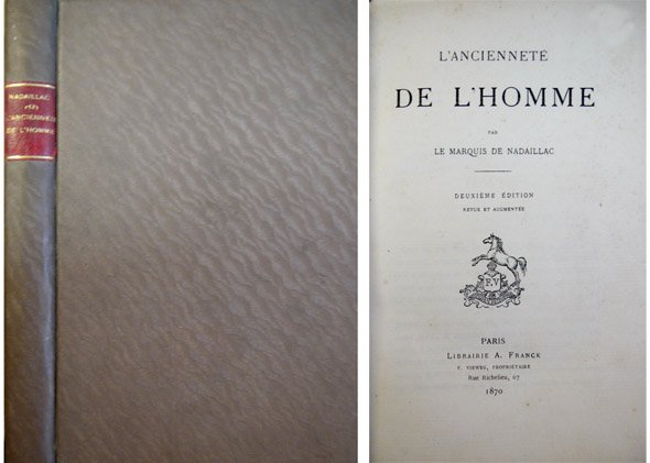 L'Ancienneté de l'Homme. Deuxième Édition revue et augmentée. | Libri antichi e moderni | Nadaillac, Marquis De [Jean-François-Albert Du Pouget De, 1818-1, 904].