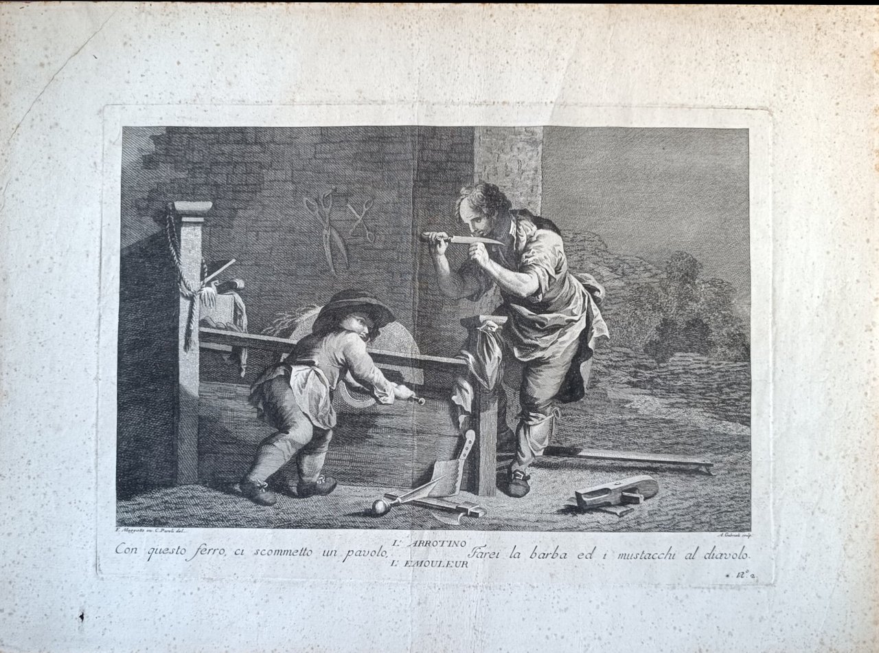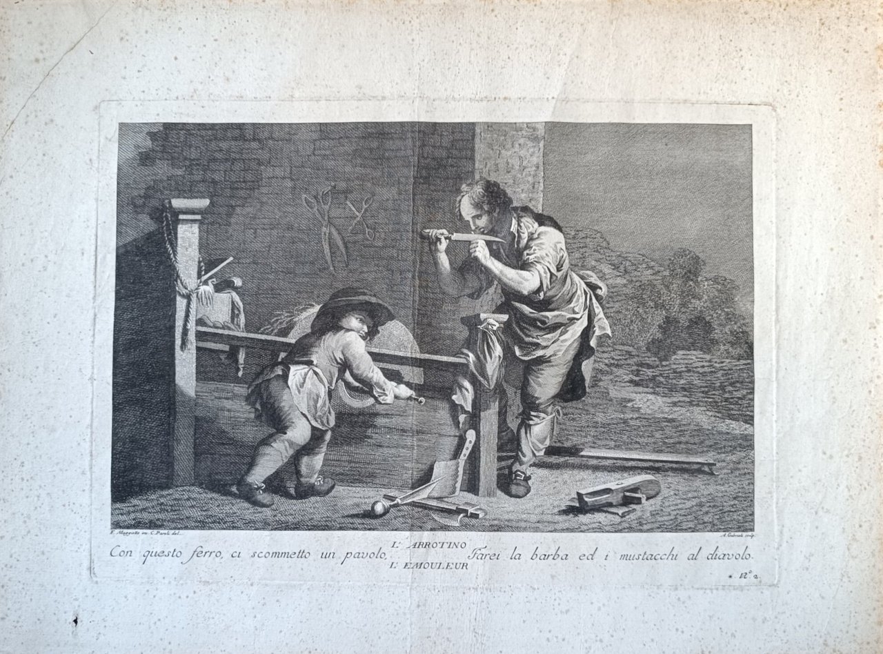 acquaforte inciso cm. 31 x 22,5 - foglio cm. 41 x 31 Buono (Good) Buon es., leggere tracce di foxing e piega centrale.