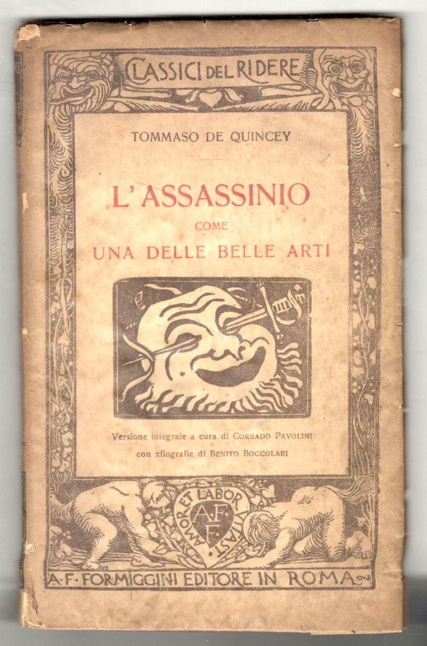 L'assassinio come una delle Belle Arti. Versione integrale a cura di Corrado Pavolini con xilografie di Benito Boccolari | Libri antichi e moderni | De Quincey, Thomas