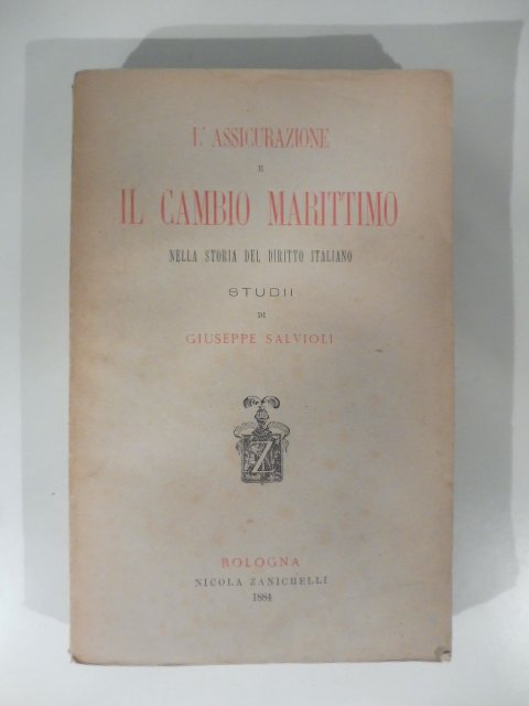 L'assicurazione e il cambio marittimo nella storia del diritto italiano. Studii di Giuseppe Salvioli | Libri antichi e moderni | Salvioli Giuseppe