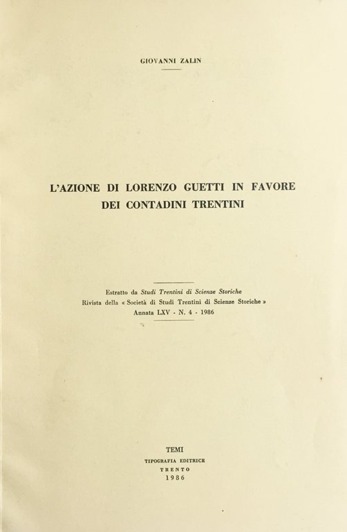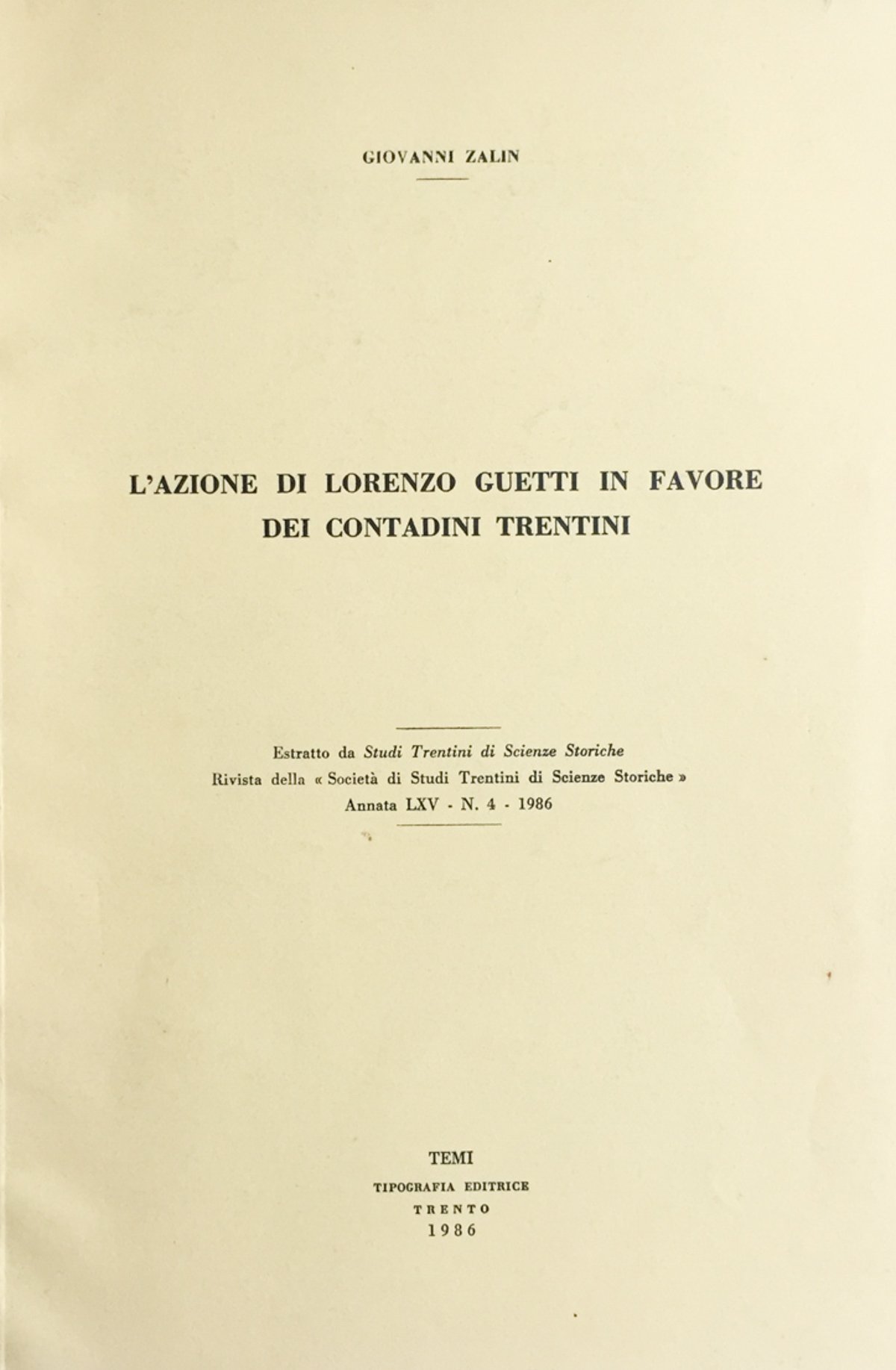 L'azione di Lorenzo Guetti in favore dei contadini trentini | Libri antichi e moderni | Zalin, Giovanni