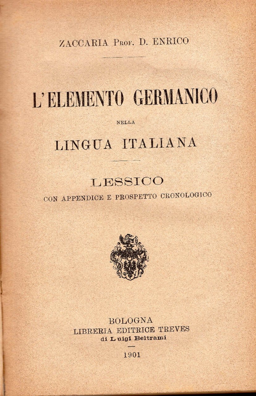 L'elemento germanico nella lingua italiana. Lessico con appendice e prospetto cronologico | Libri antichi e moderni | Zaccaria Enrico, ,Zaccaria Enrico
