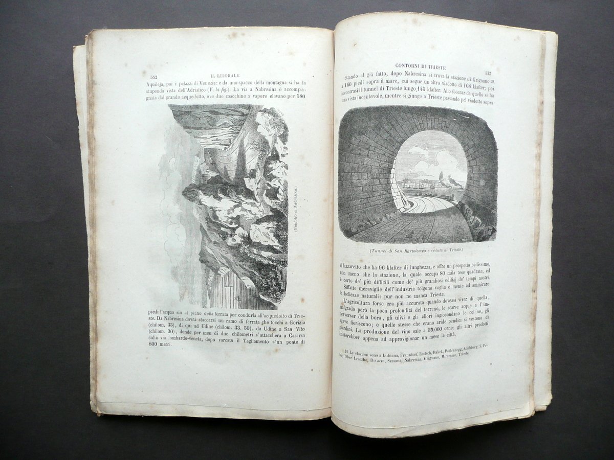 Anonimo, Escursione pel Litorale dell'Istria - Estratto dall' Illustrazione del Lombardo Veneto, Volume II - 1858 Irreperibilità dei dati tip. per mancanza della legatura, s. d. (ma 1858); cm 27x17,5; da pagina 417 a pagina 576 (estratto autonomo completo), con alcune ill. incise in b/n nel t.; mancanza della legatura ma esemplare compatto grazie alla parziale conservazione del dorso (vedi foto). Condizioni di conservazione Esemplare complessivamente in buono stato con tracce d'uso e leggeri segni del tempo; mancanza della legatura con conseguente distacco delle pp. 419-422, ma esemplare peraltro complessivamente compatto grazie alla parziale conservazione del dorso (vedi foto); alcune piccole leggere bruniture; prima e ultima pagina con leggerissimi accenni di sporco. Margine int. delle pp. 572-573 con una leggera macchietta di ruggine (vedi foto). Testo autonomo e completo, facente parte della pubblicazione Illustrazione del Lombardo - Veneto", Volume II - 1858. Da rilegare. SETT129.L12793 N "