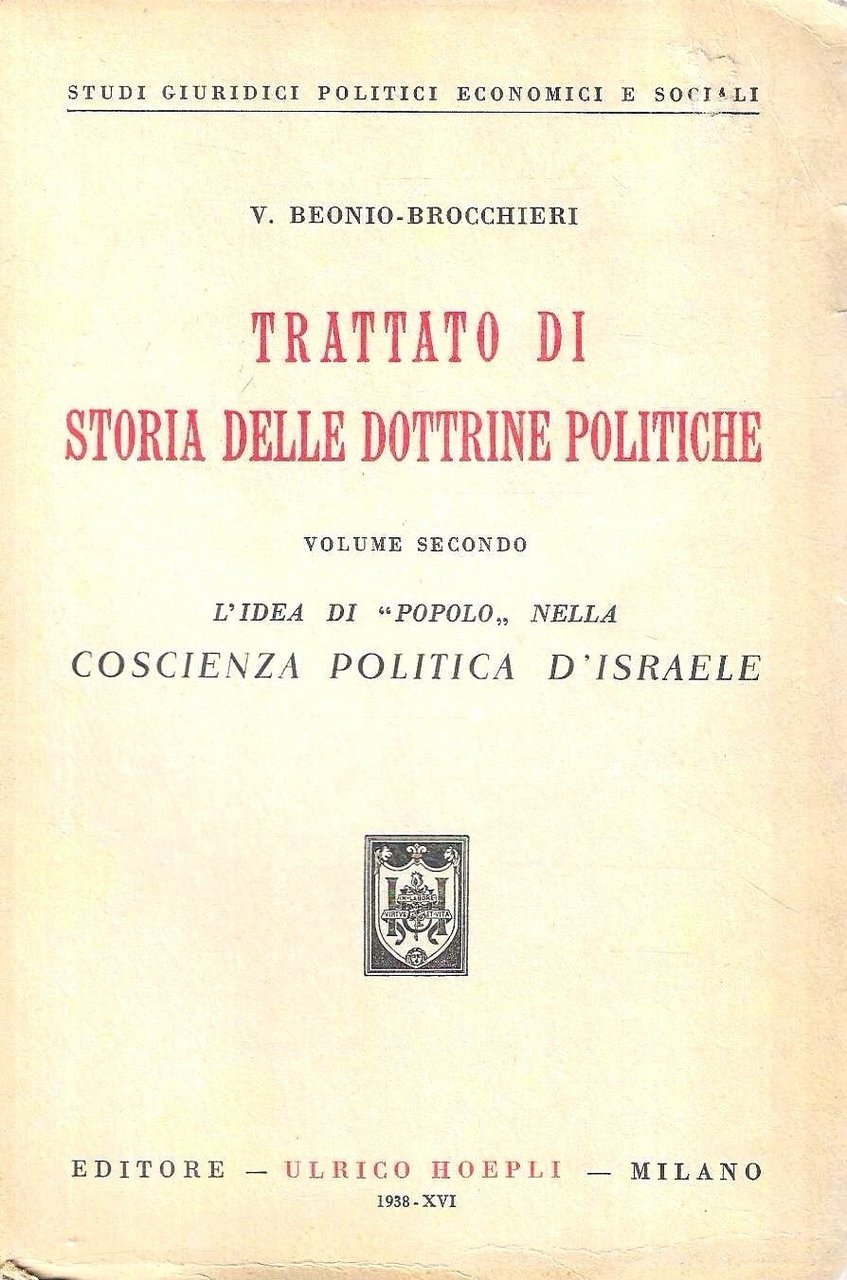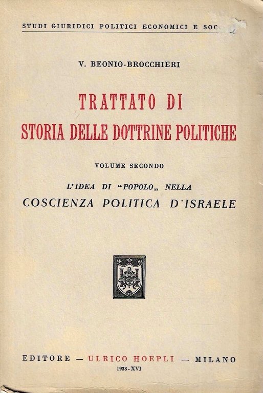 L'idea di "popolo" nella coscienza politica d'Israele. Trattato di storia delle dottrine politiche (Volume secondo) | Libri antichi e moderni | Beonio-Brocchieri, V., ,Beonio-Brocchieri, V.