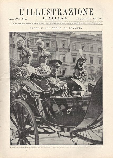 Legatura a punto metallico, copia N. 24 - 15 Giugno 1930 - VIII - Anno LVIII - fascicolo che ben porta i suoi anni, con mende al margine, tracce d'uso e ombre di polvere, giallitura alle pagine, buono lo stato di conservazione esterno, ottimo interno de L'illustrazione Italiana, rivista settimanale italiana con sede a Milano, pubblicata ininterrottamente dal 1873 al 1962 per un totale di quasi 5.000 numeri. Insieme a La Domenica del Corriere e a La Tribuna illustrata è stato uno dei settimanali più letti in Italia dalla fine Ottocento all'avvento della televisione. Presenti vari timbri di appartenenza. Numero Pagine 47