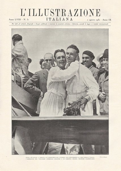 Legatura a punto metallico, copia N. 31 - 2 Agosto 1931 - X - Anno LVIII - fascicolo che ben porta i suoi anni, con mende al margine, tracce d'uso e ombre di polvere, giallitura alle pagine, ottimo lo stato di conservazione complessivo, de L'illustrazione Italiana, rivista settimanale italiana con sede a Milano, pubblicata ininterrottamente dal 1873 al 1962 per un totale di quasi 5.000 numeri. Insieme a La Domenica del Corriere e a La Tribuna illustrata è stato uno dei settimanali più letti in Italia dalla fine Ottocento all'avvento della televisione. Presenti vari timbri di appartenenza. Numero Pagine 32