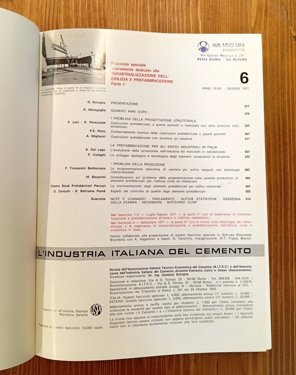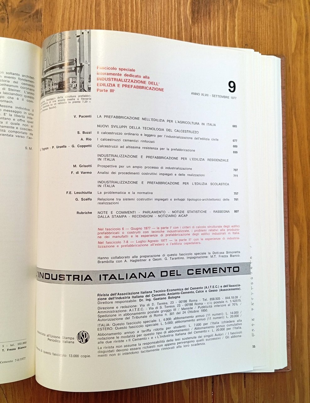 L'industria italiana del cemento (Rivista) - Industrializzazione dell'edilizia e prefabbricazione (fascicoli speciali nn. 6, 7-8, 9)