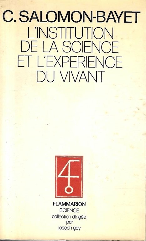 L'Institution de La Science et L'Experience du Vivant. Methode et Experience a L'Academie Royale des Sciences 1666-1793 | Libri antichi e moderni | Salomon-Bayet, Claire, ,Salomon-Bayet, Claire