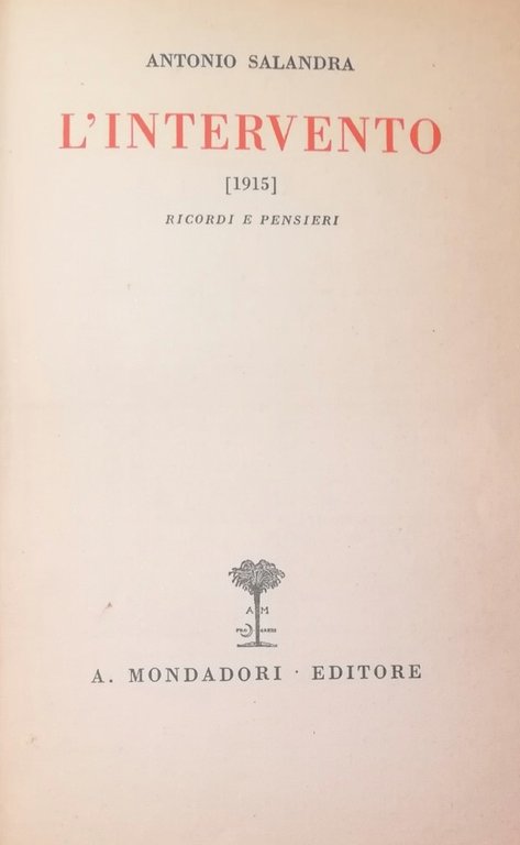 L' INTERVENTO [1915] | Libri antichi e moderni | SALANDRA ANTONIO, ,SALANDRA ANTONIO
