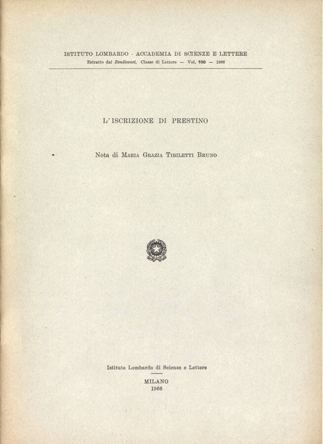 L' iscrizione di Prestino | Libri antichi e moderni | Maria Grazia Tibiletti Bruno