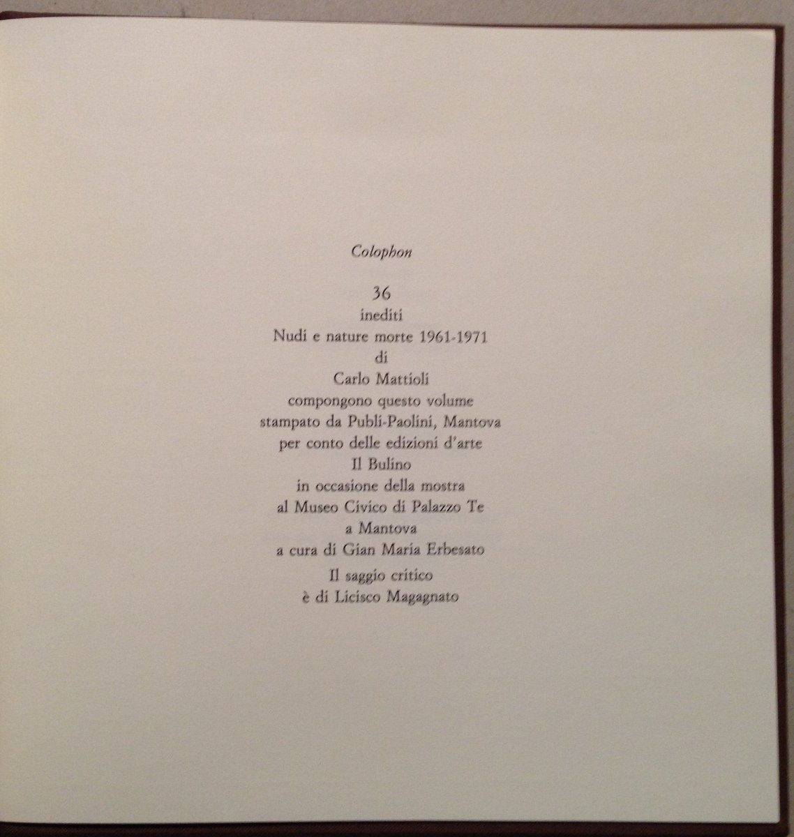 L. Magagnato Carlo Mattioli Inediti Nudi e Nature Morte Palazzo Te Mantova 1986 | Libri antichi e moderni |