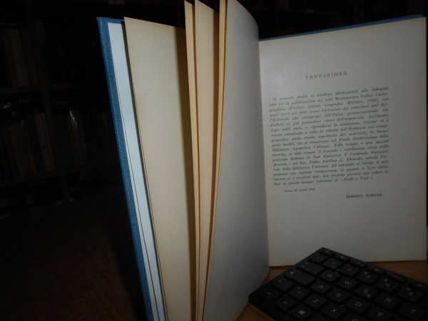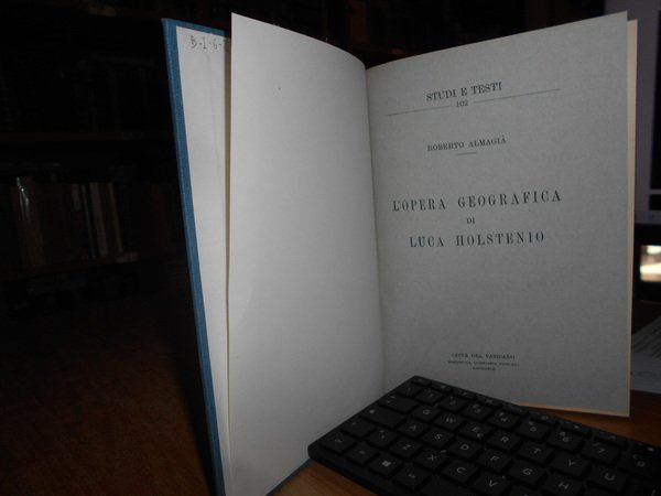 Roberto Almagià. Città Del Vaticano, Biblioteca Apostolica Vaticana, 1942. L'Opera Geografica di LUCA HOLSTENIO. In-8°, tela bleu con titolo in oro entro tassello al dorso, copertine originali conservate. (iv), 172 pp. con XI tavole fuori testo stampate su carta patinata. Perfetto esemplare in legatura recente con le copertine originali conservate. Uff. B - I - 6 - 2
