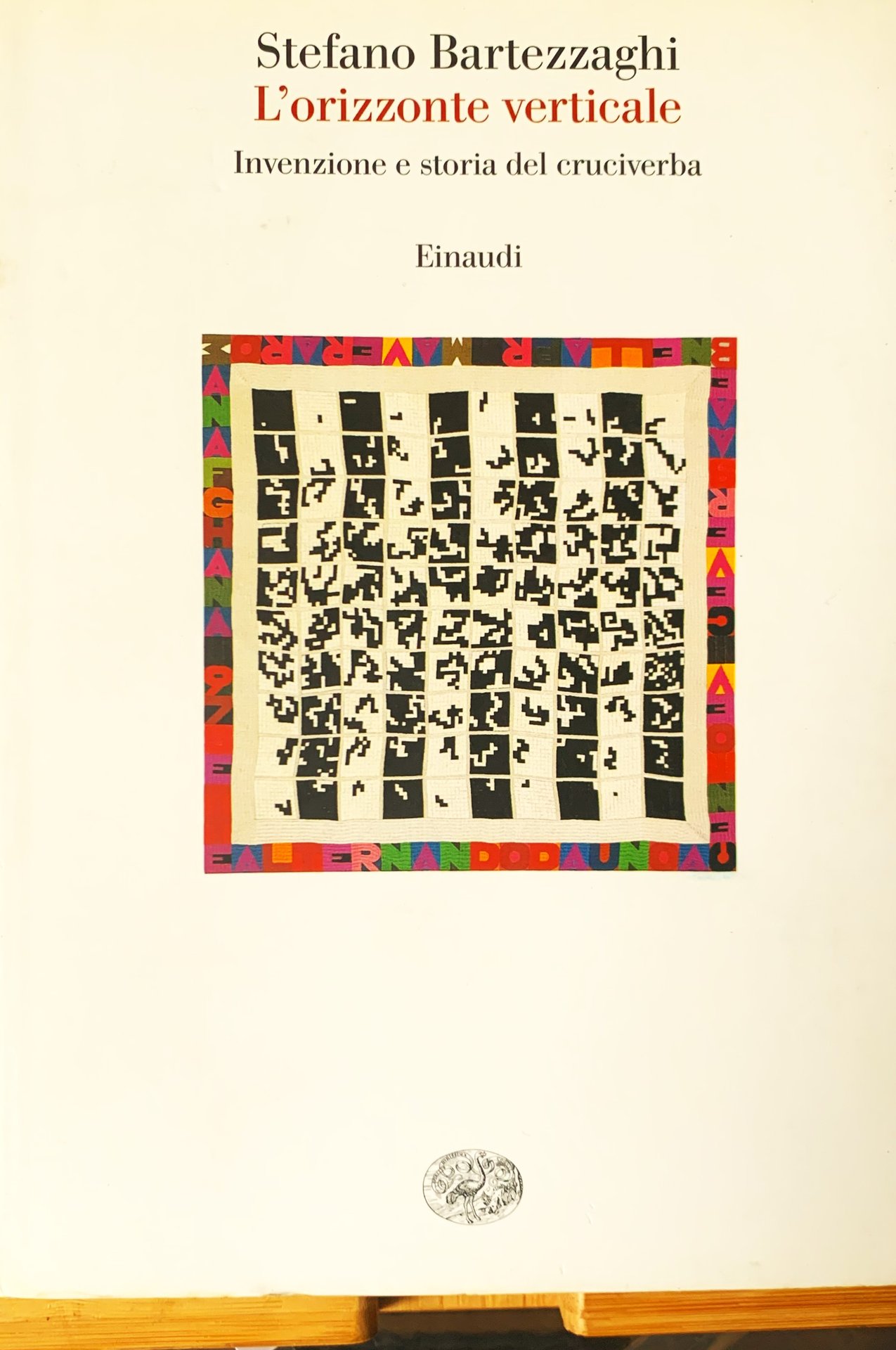 I ed., collana "Saggi", 891. In-8, pp. XX+388, brossura con risvolti con illustrazione a colori al primo piatto (Alighiero Boetti, "Alternando da uno a centoo e viceversa", 1977, ricamo a mano su lino. Collezione Mis, Bruxelles). Con 65 figure in b/n nel testo e con 25 figure in b/n e colori in tavole patinate f.t. Stato buono-ottimo Sommario: Indicce delle figure nel testo - Nota al testo - Ringraziamenti - Prologo. Quadro del Novecento - Orizzonte (L'invenzione del cruciverba (New York World - La mania del cruciverba - Verso l'Europa: il "crossword britannico" e i "mots croisés" francesi - Guerra e dopoguerra) - L'arrivo in Italia (1925 - Gli anni Trenta e la "Settiimana Enigmistica" - Guerra e immediato dopoguerra - Dal folklore all'industria) - Verso la fine del Novecento (Doopo Margaret Farrar- L'enigmistica popolare contemporanea - L'enigma del futuro)) - Verticale (Fra le caselle (Gli antenatii - I precursori - "Puzzledom" ed enigmistica accademiccadi fronte al cruciverba - Varianti e varietà - Enigmistica scolastica - "C'erano dei quadrati neri alla rinfusa, e poco d'incrocioo". Intervista a Bruno Makain) - Puzzle society (Manhattan Puzzle - La sindrome ddi Babbitt - Il cruciverba delle scienze umane - I maniaci del cruciverba) - Fuori dagli schemi (Quadrare il linguaggio - Perché a Gertrude Stein non piacevano le parole crociate? - Cruciverba e "detective story" - "Rocce e carbonio e cieche pulsazioni" - Il conddominio dei destini incrociati)) - In limine (Solutori: Gretchen - Autori: il P. - Il sogno della mano) - Note - Indice dei nomi.