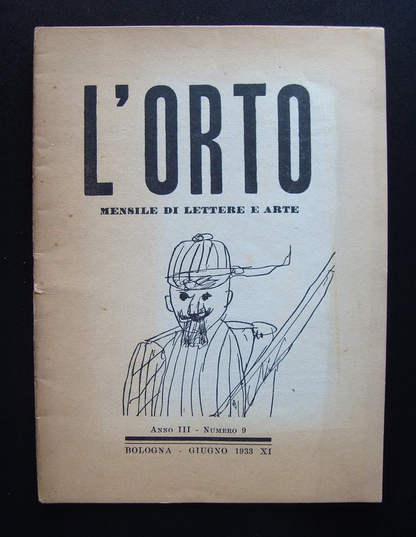 Rivista, L'ORTO" Mensile di lettere e arte anno III - Numero 9 Bologna - Giugno 1933 XI Bologna 1933 XI, cm 24 x 17, pp 16, ill. fotogr. in b/n nel. t, n.1 tavole b/n.con disegno di dupont, alcune inserzioni pubblicitarie d'epoca in b/n in chiusura di testo; brossura ed. ill.b/n. Numero completo. Condizioni di conservazione Esemplare in buone condizioni con minime tracce d'uso; brossure con bruniture ai margini qualche piccola macchietta; interni con bruniture, traccia di piega di conservazione; esemplare compatto. Numero completo. OPEB.3271 blu "