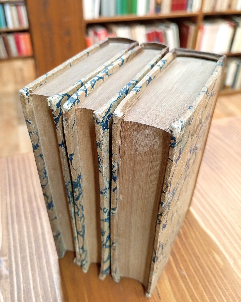 Opera completa di 7 volumi raccolti in tre tomi, formato tascabile di 9 x 13,5 cm, uniformi legature in mezza pelle con titoli in oro ai dorsi, pp. 174; 180; 224; 188; 184; 184; 255. Ordinarie fioriture alle carte, ma testo sempre ben leggibile, paginazione compatta e legature ben salde; esemplare in buono-ottimo stato di conservazione.