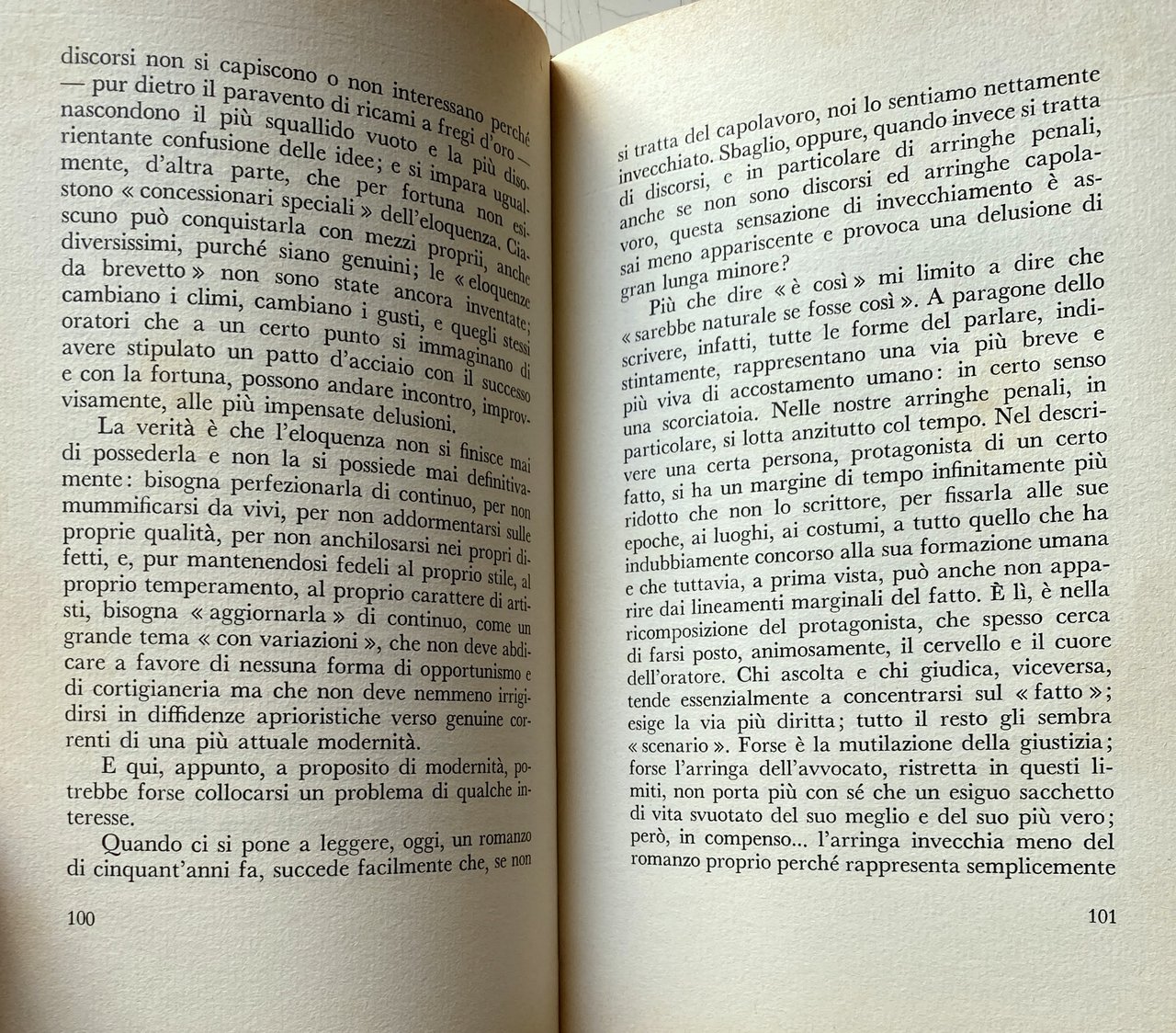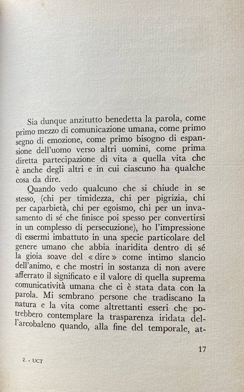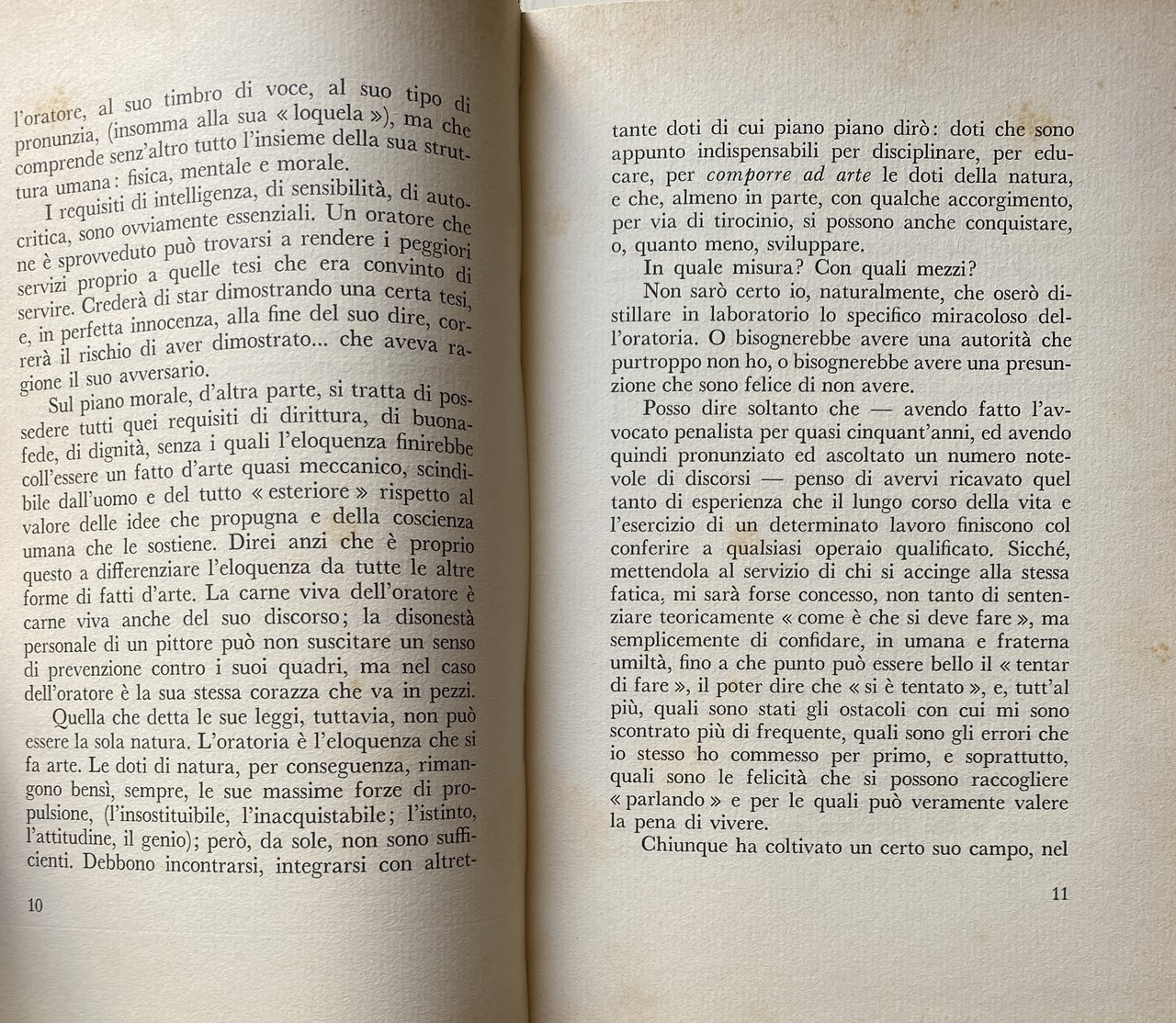 Questo è il primo libro di un grande avvocato penalista, uno dei maggiori del nostro paese. Libro di memorie, con rievocazioni di processi celebri? No; invano vi si cercheranno nomi, volti precisi, episodi. Un saggio sull'eloquenza? In parte certamente sì; ma soprattutto si tratta di una confessione, di un esame di coscienza, di appunti di esperienza: il sugo, per dirla col Manzoni, di tutta una vita, spesa con appassionata coscienza morale al servizio della professione. Un libro raro, dunque: un libro di profonda e ricca umanità, nel quale, consumati tutti i riferimenti particolari, la missione del penalista è scavata nei suoi aspetti più universali e drammatici. Il valore della parola, come strumento insostituibile di comunicazione fra gli uomini, come espressione primordiale di quel bisogno dell'altro che ogni anima avverte in sé, come potenza e carica creativa che si trasmette, donde la massima grandezza e la massima responsabilità di colui che parla in pubblico; il dramma segreto dell'oratore che, pur avendo partecipato del tormento creativo dell'artista, quando l'arringa è finita, la causa conclusa e l'aula deserta, non si trova più nulla davanti a sé, a differenza di tutti gli altri artisti che hanno sempre la possibilità di rivedere la loro opera, di criticarla, di migliorarla, di perfezionarla; la necessità di un retroterra culturale e umano, donde alimentare i diversi rapporti col difeso, col pubblico, col giudice, con la verità stessa. Un libro che si potrebbe definire, in qualche misura, socratico: perché non pretende di insegnare nulla di definitivo ma solo rappresentare un'esortazione, un incoraggiamento, per le nuove generazioni di penalisti, a prepararsi da sé, in una ricerca umile, ma personale, dei metodi di lavoro, a guardarsi dalle molteplici deformazioni professionali, a rispettare le verità degli altri. Al culmine della carriera, sulla soglia dei settant'anni, Castelnuovo Tedesco si è cimentato in un mestiere diverso dal suo: ha scritto, invece di parlare. Ma il libro è una precisa testimonianza che il grande avvocato era anche e ci son pagine davvero bellissime, di ottimo stile un autentico scrittore.