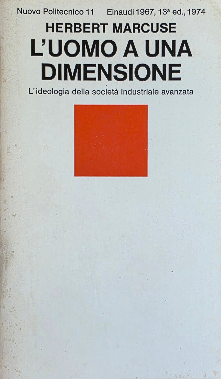 L' UOMO A UNA DIMENSIONE. L' IDEOLOGIA DELLA SOCIETÀ INDUSTRIALE AVANZATA | Libri antichi e moderni | MARCUSE HERBERT, ,MARCUSE HERBERT
