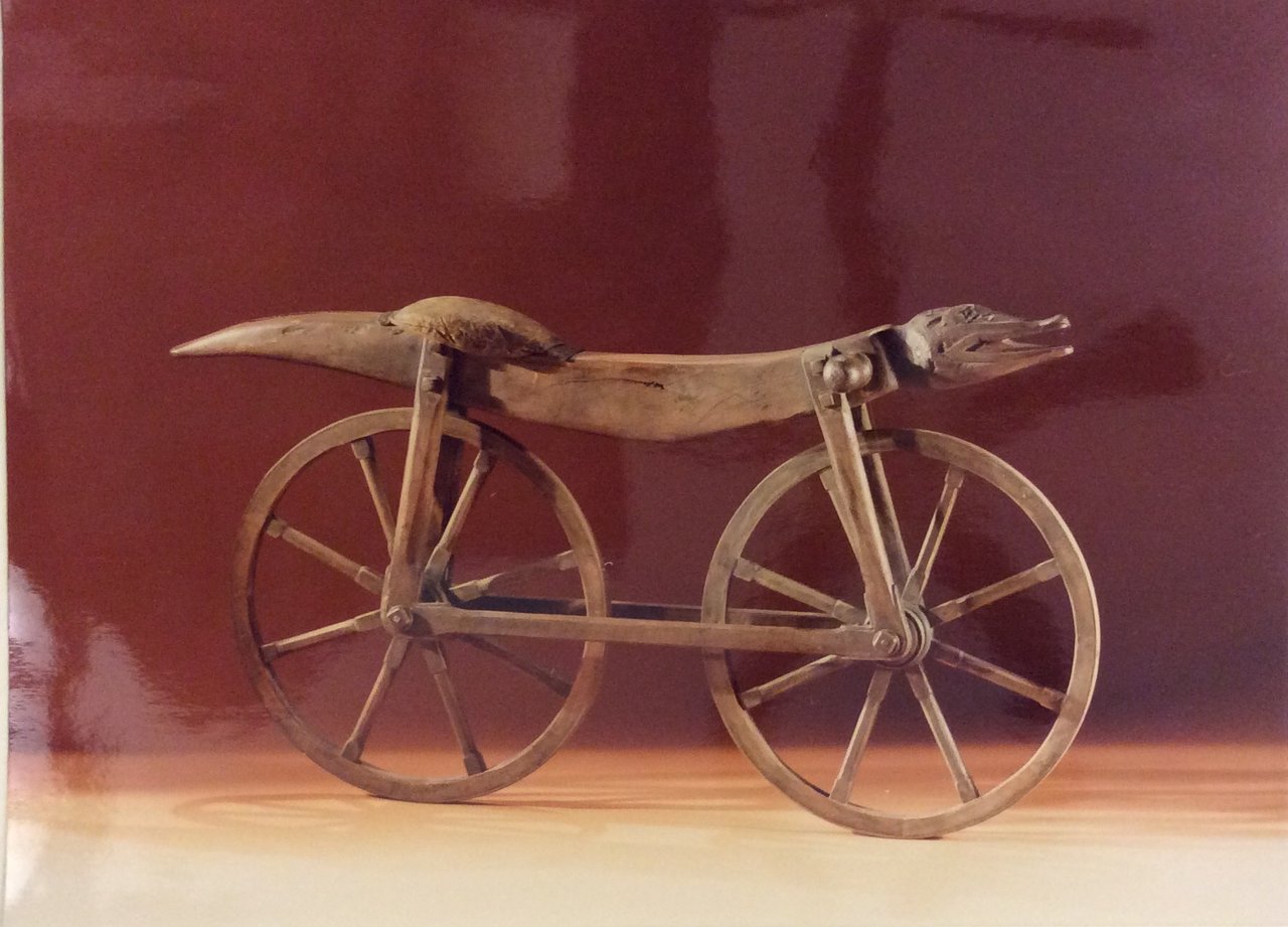 Astuccio editoriale in tela blu (mm. 330x320) contenente una bellissima raccolta di 20 fotografie a colori, applicate su un cartoncino giallo con a fronte la descrizione, che fanno la storia della bicicletta: dal celerifero (antenato delle due ruote) costruito in Francia nel 1791 - al monociclo (sempre francese) del 1869 con la ruota alta 2 m. - al modello militare bersaglieri (modello pieghevole portato a spalle durante i trasferimenti) costruito nel 1911 da Edoardo Bianchi di Milano - al modello gran turismo del 1928 (Off. Opel, Germania) - alla bicicletta da corsa del 1949 (costruita da E. Bianchi) - alla bicicletta Moser del 1984. Quasi tutta la raccolta riguarda biciclette provenienti dal tesoro, custodito e collezionato negli anni da Fermo Galbiati di Brugherio, conosciuto come il collezionista di collezioni e fotografate dallo Studio Stella di Brugherio. Esemplare molto ben conservato.