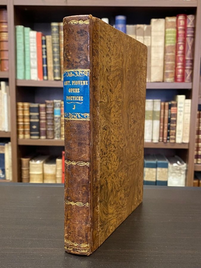 <span style="font-style: normal;">Libro manoscritto in-8° (cm. 20,8), legatura dei primi dell'Ottocento in mezza pelle con titolo in oro al dorso, tagli gialli; pp. 254 [60 bb.] in ottimo stato e in chiara calligrafia, su carta antica; </span><i>Ex dono</i> più recente al risguardo. Opera letteraria inedita di Antonio Piovene di Vicenza, «Accademico Olimpico» che volgarizza le dieci egloghe virgiliane delle Bucoliche e le Georgiche in tre canti. La stesura precede il periodo di fermento risorgimentale dell'A<i>ccademia Olimpica di scienze, lettere ed arti</i> di Vicenza, storica istituzione culturale nata nel XVI secolo. È una delle non comuni testimonianze del periodo di difficoltà dell'ente che Napoleone Bonaparte tentò di sopprimere, ma che il Comune salvò con un accordo del 1813 incorporandone la sede, il Teatro Olimpico, in cambio dell'uso perpetuo ed esclusivo. Al frontespizio si segnala «Tomo I» ma il testo appare così completo con in fine le carte bianche. Ottimo esemplare. (NO8)