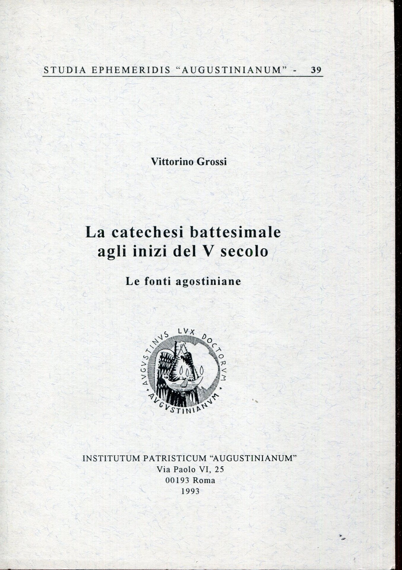 205 p. ; 24 cm. brossura, collezione: Studia ephemeridis Augustinianum ; 39, timbro di biblioteca al frontespizio, volume dismesso Molto buono (Very Good) .