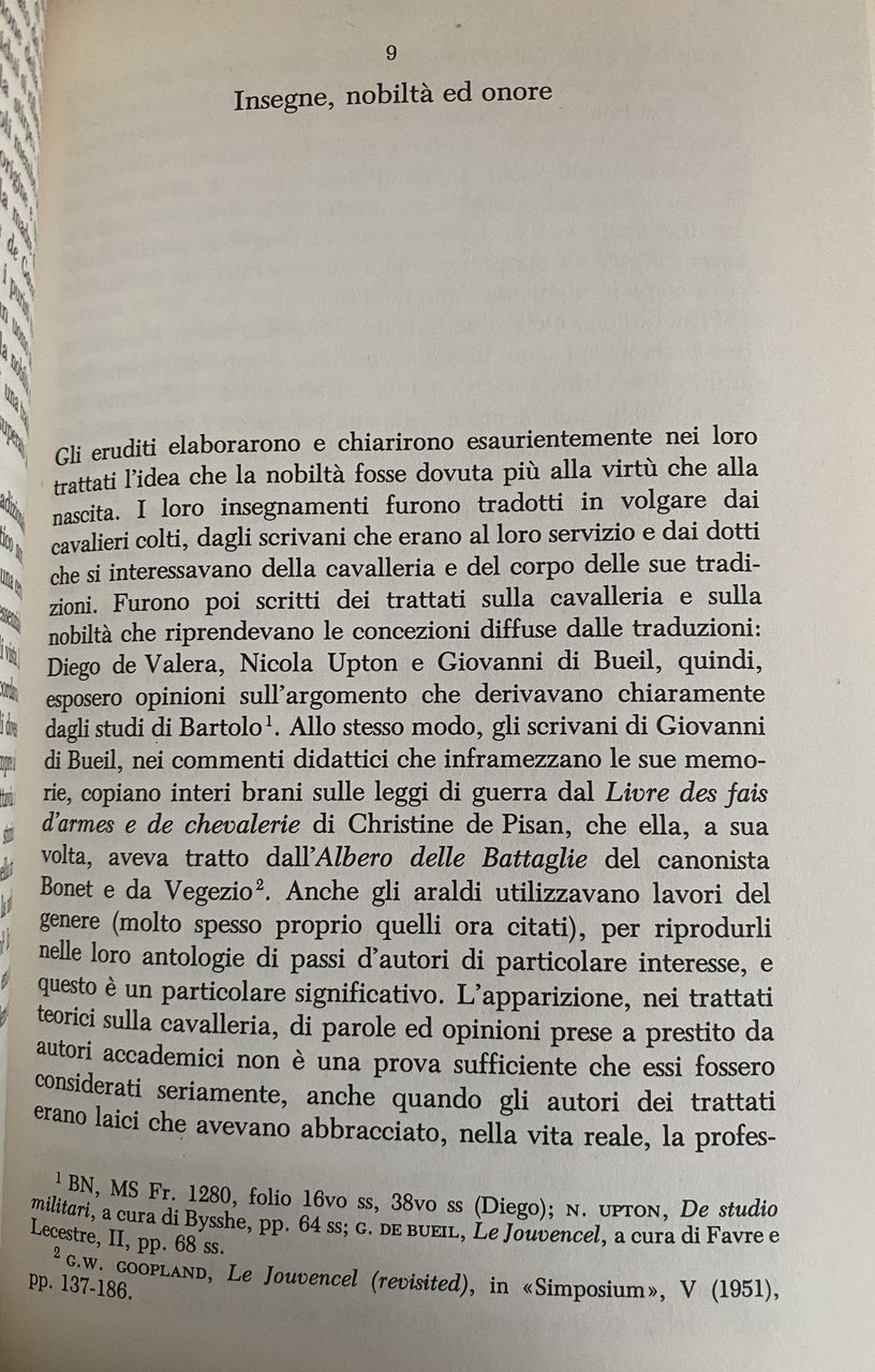 Soggetti: Cavalleria Storia medievale Medievistica Medioevo Storiografia Saggi storici Nobili Nobiltà Aristocrazia Cavalieri Origini Chiesa Crociate Cristianesimo Cerimonie Investitura Tornei Mitologia storica Araldica Araldi Insegne Onore Simbologia Ordini secolari Spettacoli sfarzosi Voti solenni Guerre Religione Terra Santa Conquiste Donne Fonti manoscritte primarie edite Secondarie Bibliografia Eroi Canonici Società cavalleresca Sigilli Scudieri Teatro Onore Cluny Abbazie Cataloghi Liturgia Semantica Letteratura cortese Gesta Biografie Memorie Riferimento Collezionismo Libri rari fuori catalogo Bloch Chrétien de Troyes Christine Pisan Goffredo Vite Personaggi illustri Principe Nero Cronache regionali Angiò Anjou Trecento novelle Sacchetti Saisnes Albans Chronicle Historia regum Britanniae Monmouth Chanson Roland Latino Francese antico La Sale Mézieres Meun Bédier Bossuat Boulton Bumke Esercito professionale Crisi rurale Guerra Cent'anni Philippe Contamine Francia Ordine Toson Oro Georges Duby Josef Fleckenstein Feudale Feudalesimo Even Adam Flori Studi medievali Léon Gautier Ciclo Artù Huizinga The Waning Eric Köhler Arturiani Loomis Painter Thomasin von Zirclaria Geoffrey de Charny Schultz Militare Armature Corte Corti Tolkien Beowulf Walpole Migne Muratori Annales Archivio Héraldiques Suisses École des Chartes Rolls Series Irlanda Gran Bretagna Documenti Agiografie Chevalerie Miti Romanzi Ritterliches Tugendsystem Dignità Iniziazione maschili Männerbund Dumézil Ideali cavallereschi Caxton Ariosto Cervantes Radetzky Geste Romanzo arturiano Carlomagno Roncisvalle Camaalot Battaglie Nemici Fede Rolando Amore Dama Dame Lancillotto Aventure Perceval Fedeli Graal Walter Scott Circoli preraffaelliti Wagner Epica Cristianità Reconquista Tavola Rotonda Istituzioni Trattatistica Lucien Febvre Morris Cavalli Armi Viollet-le-Duc Sociale Guido Carlo Mor Gustave Coehn François-Louis Ganshof Germania Gerd Tellenbach Giovanni Tabacco Milites Potere Lignaggio Avventura José Enrique Ruiz Doménec Andrea Fassò Francesco Zambon Alessandro Barbero Edward Lear Leggende Riti Rituali Cerimoniale Trovatori Gentiluomini Allmand Curry Asante Ayton Balliol Crécy Stalla Boarstall Bohun Bréauté Cambridge Camoys Campagna Carriera Cartulario Castelli Cronaca Tribunale Cultura Morte Reed Edoardo Inglese Tenute Kumase Lancaster Terre Cartular Estates King Lancastrian Lord Manuscripts Marriage Michael Prestwich Périgord Périgueux Surrender Surviving Vegetius Warfare Woodbridge Lettere Libro Londra Louis Maniero Matrimonio Comunità militari Normandia Principi Salterio Reclutamento Regno Rotoli Rouen Scozia Assedio Soldati Resa Strategia Tradimenti Crusading Chivalry Medieval history Middle Ages Historiography Historical essays Nobles Nobility Aristocracy Knights Origins Church Crusades Christianity Ceremonies Investiture Tournaments Mythology Heraldry Heralds Insignia Honor Symbolism Secular orders Spectacular spectacles Solemn vows Wars Religion Holy Land Conquests Women Primary and published manuscript sources Secondary Bibliography Heroes Canons Chivalric society Seals Squires Theater Abbeys Catalogs Liturgy Semantics Courtly literature Deeds Biographies Memoirs Reference Collectibles Rare books out of print Lives Illustrious figures Black Prince Regional chronicles Fourteenth century novels Latin Old French Professional army Rural crisis Hundred Years War France Order Gold Feudalism Studies Arthurian cycle Arthurians Military Armor Courts Archive Ireland Great Britain Documents Hagiographies Myths Dignity Male initiation Ideals Novel Charlemagne Battles Enemies Faith Love Lady Ladies Lancelot Faithful Pre-Raphaelite Circles Epic Reconquest Round Table Institutions Treatises Germany Power Lineage Adventure Legends Rites Rituals Ceremonial Troubadours Gentlemen Stable Campaign Career Castles Culture Death English Lands Letters Book London Manor Community Normandy Princes Psalter Recruitment Kingdom Scrolls Scotland Siege Soldiers Strategy Betrayals Saluzzo Marquis Burke