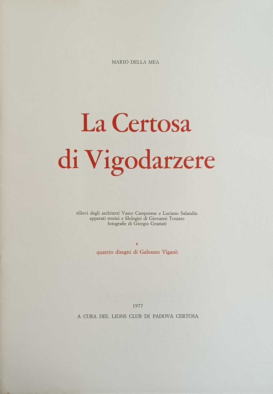 LA CERTOSA DI VIGODARZERE | Libri antichi e moderni | DELLA MEA MARIO, ,DELLA MEA MARIO