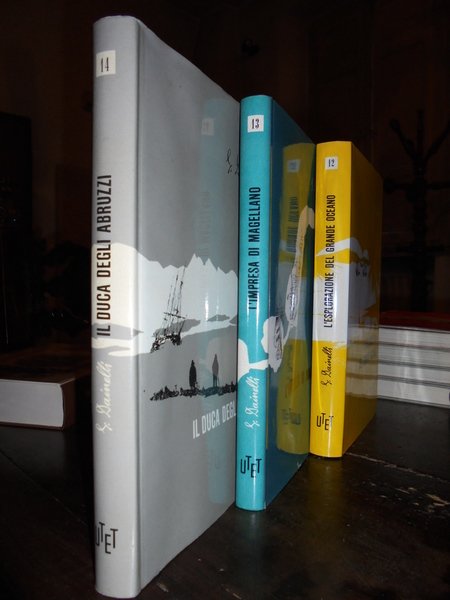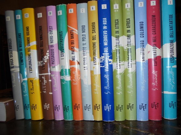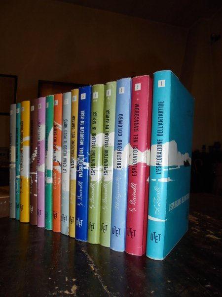 (Geografia) DAINELLI, Giotto. Torino, U.T.E.T., 1958 - 1967. La Conquista della Terra. Esploratori e esplorazioni. 15 volumi in-8° grande, tela edit. e sovracopertine illustrate. Complessive 5730 pp. con 2810 illustrazioni n.t. e 2 tavole a colori f.t. Pregevole raccolta completa in ottimo stato di conservazione o come nuova. Le spese di spedizione sono di euro 12. Uff. stanzetta mob. a sinistra in alto
