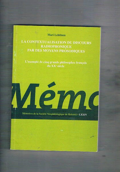 La contextualisation du discours radiophonique par des moyens prosodiques. L'exemple de cinq grands philosophes français du Xx siècle. These pour le doctorat. Testo più Cd-Rom | Libri antichi e moderni | Lehtinen Mari.