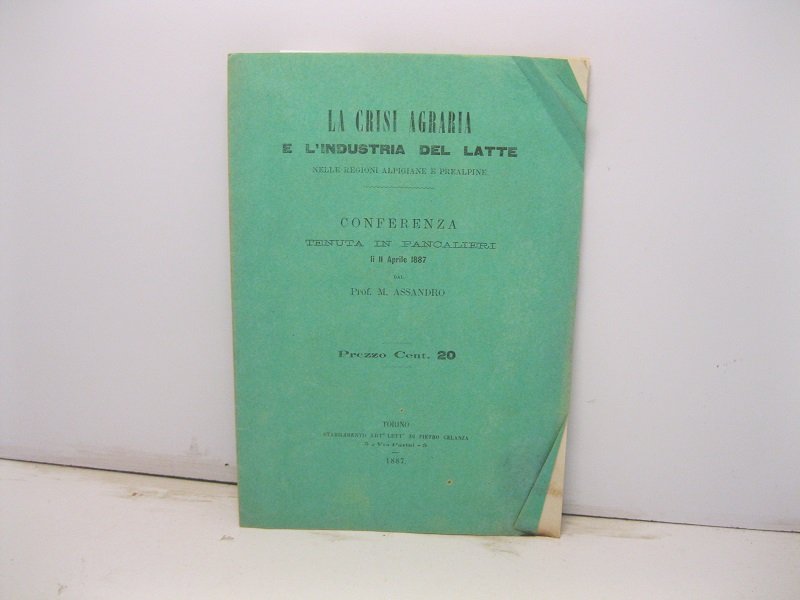 La crisi agraria e l'industria del latte nelle regioni alpigiane e prealpine. Conferenza tenuta in Pancalieri li' II aprile 1887 dal Prof. M. Assandro