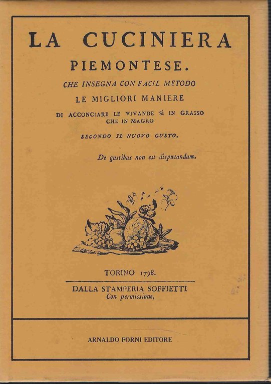 legatura editoriale con sovraccopertina. collana di testi antichi di gastronomia 11.ristampa dell'edizione del 1798.il volume è in ottime condizioni.