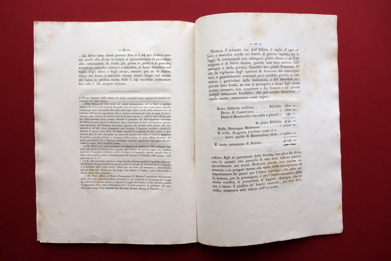 La Cura dei Boschi Memoria dell'Ingegnere Giuseppe Bergolli Soliani Modena 1846 | Libri antichi e moderni |