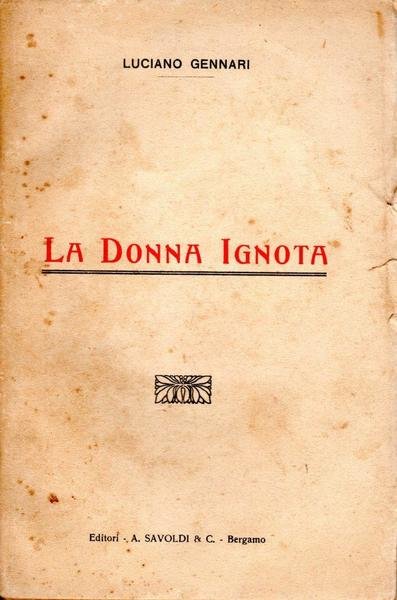 La donna ignota, edizione 1921, pp. 110, formato 13 x 19,5. <BR>Copertina morbida di colore beige con titoli in nero e rosso al piatto anteriore e sul dorso. <BR>Piatti bruniti. Pagine ingiallite a causa dell'età. Nel complesso buone condizioni.