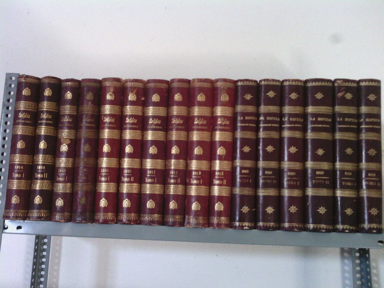 Madrid: Prensa Gráfica, 1914 a 1921.- 16 volúmenes de unas 400 páginas cada tomo. CONTIENE: Año I. (1914) Nº 1, hasta, Año VIII (1921) Nº 417; En Folio mayor (36 x 28,5 cm): Bellamente ilustrada; Enc. en Media Piel Editorial original.- Bellísima revista que abarca la época de la Primera Guerra Mundial, ilustrando con excelentes pinturas y grabados las diferentes epopeyas de esta Gran Guerra y a muchos de sus personajes protagonistas más ilustres. Además abarca todos los campos de la cultura, artes, ciencias, literatura, sociedad, etc. etc., siendo uno de los semanarios madrileños mas variados y representativos de su momento histórico-social. Al formar una colección cronológica completa, todos los volúmenes se venden como conjunto al precio indicado. Esta publicación se siguió editando hasta el año 1931 en que acaba.* La encuadernación con algunas rozaduras, interior impecable. LITERATURA Y FILOSOFÍA ESPAÑOLAS DE LOS SIGLOS XIX-XXI Y SU HISTORIA EN GENERAL
