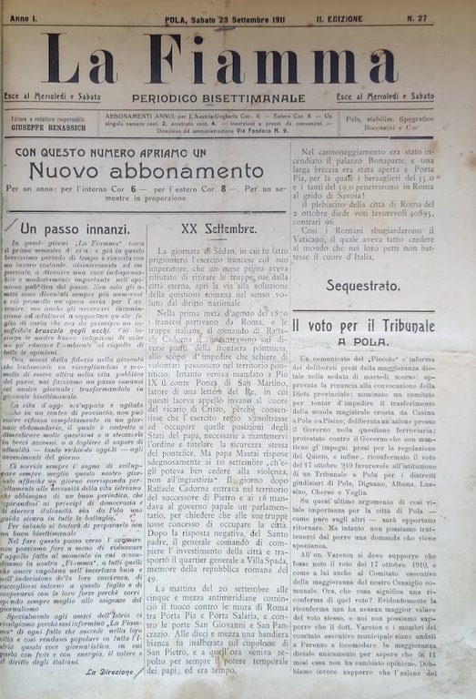 LA FIAMMA. PERIODICO BISETTIMANALE ANNO I-II