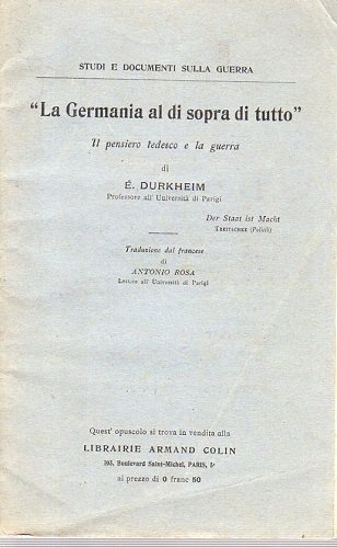 La Germania al di sopra di tutto , il pensiero tedesco e la guerra | Libri antichi e moderni | Durkheim E