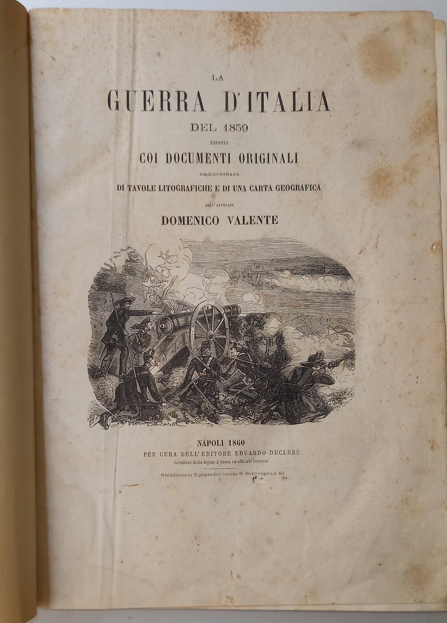LA GUERRA D'ITALIA DEL 1859 ESPOSTA COI DOCUMENTI ORIGINALI - 1860 | Libri antichi e moderni | Valente Domenico