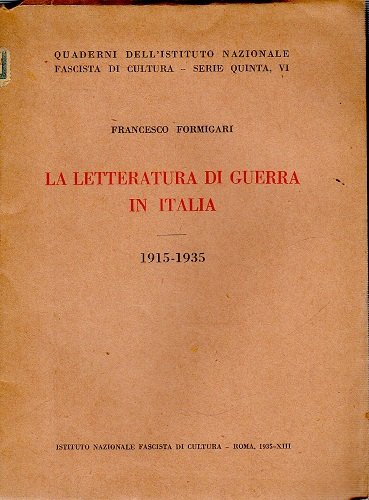 La letteratura di guerra in Italia 1915-1935 | Libri antichi e moderni | Formigoni F