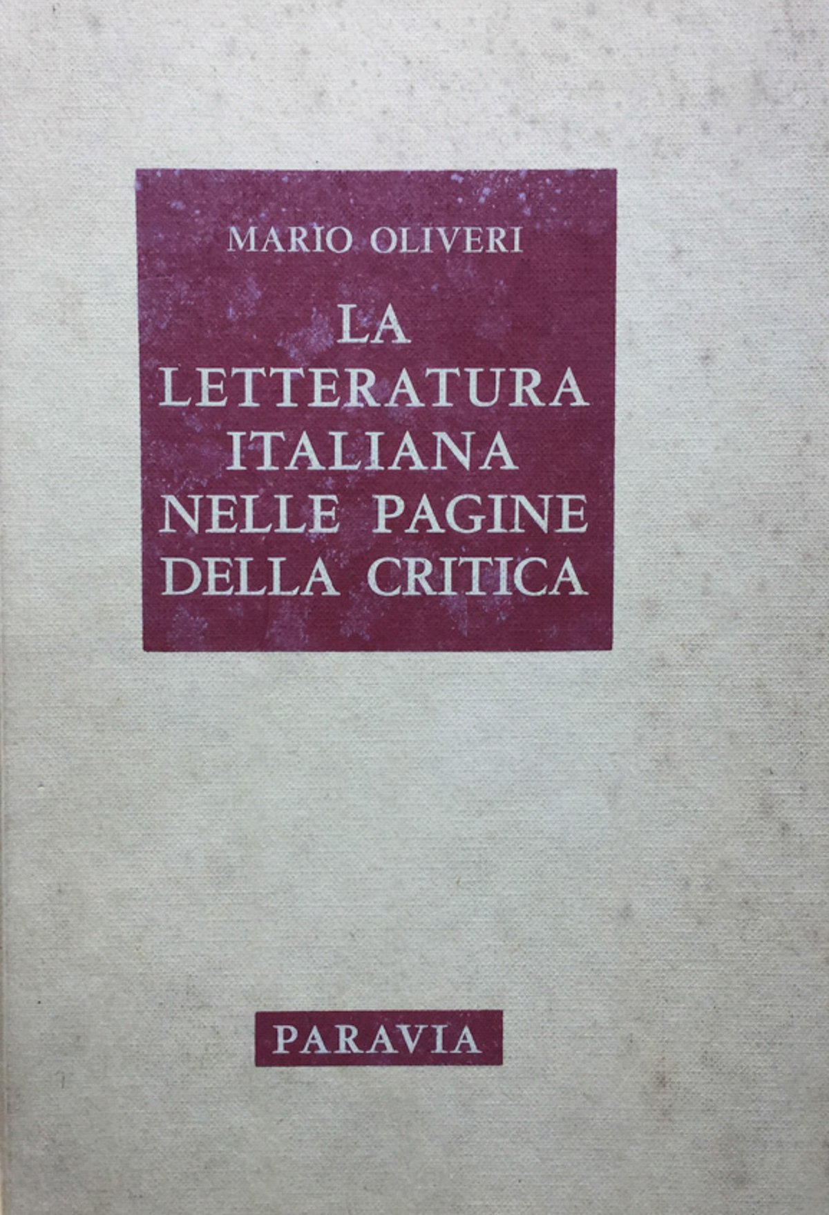 La letteratura italiana nelle pagine della critica. Mario Olivieri 1968