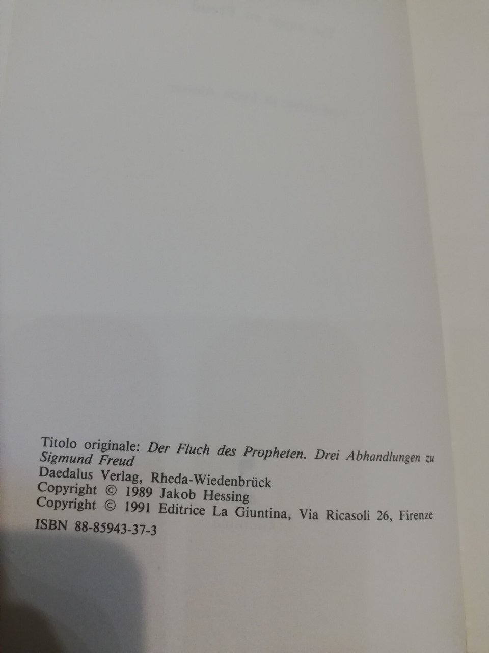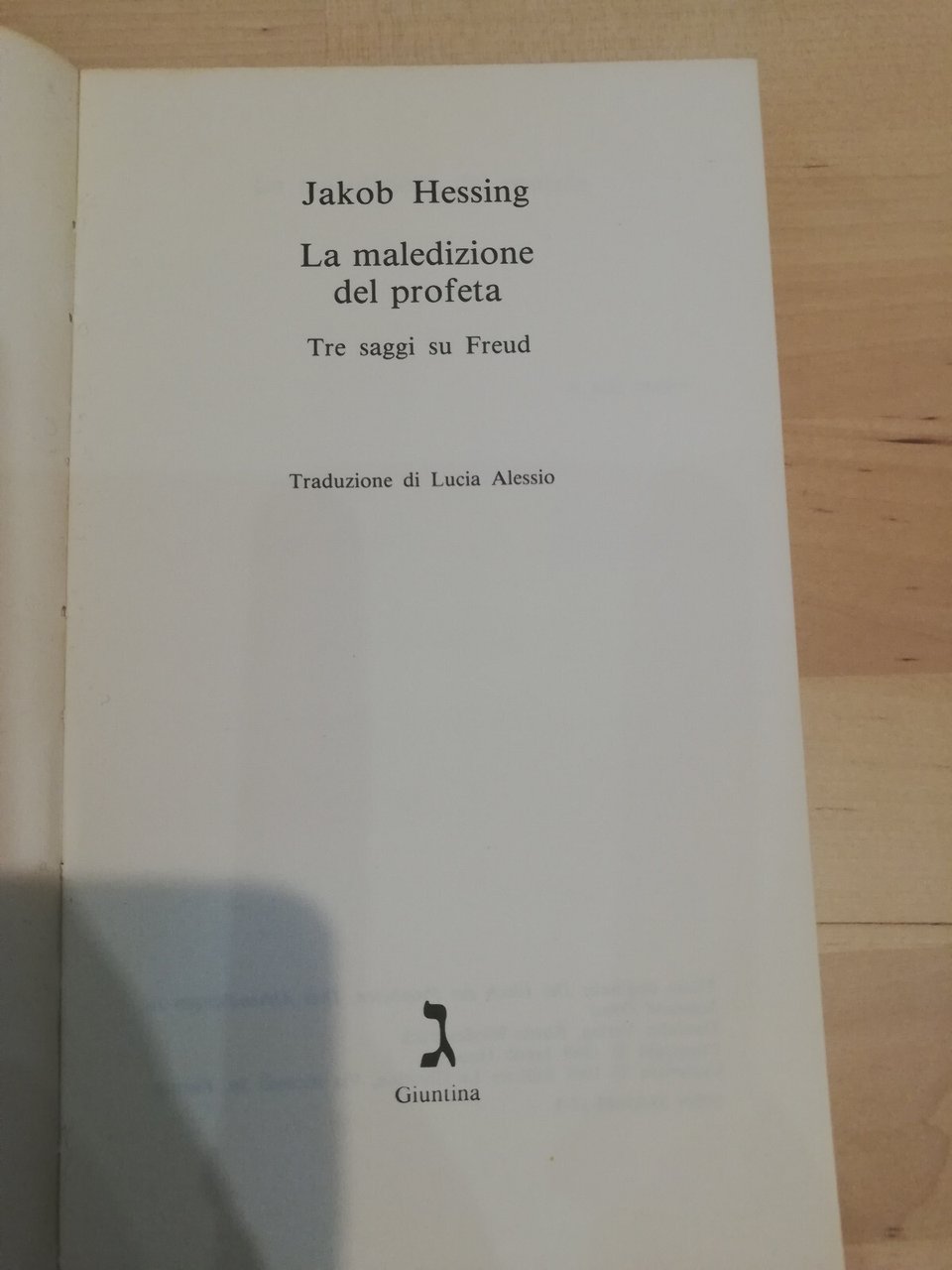 La maledizione del profeta. tre saggi su Freud, Jakob Hessing, Giuntina, 1991 | Libri antichi e moderni |