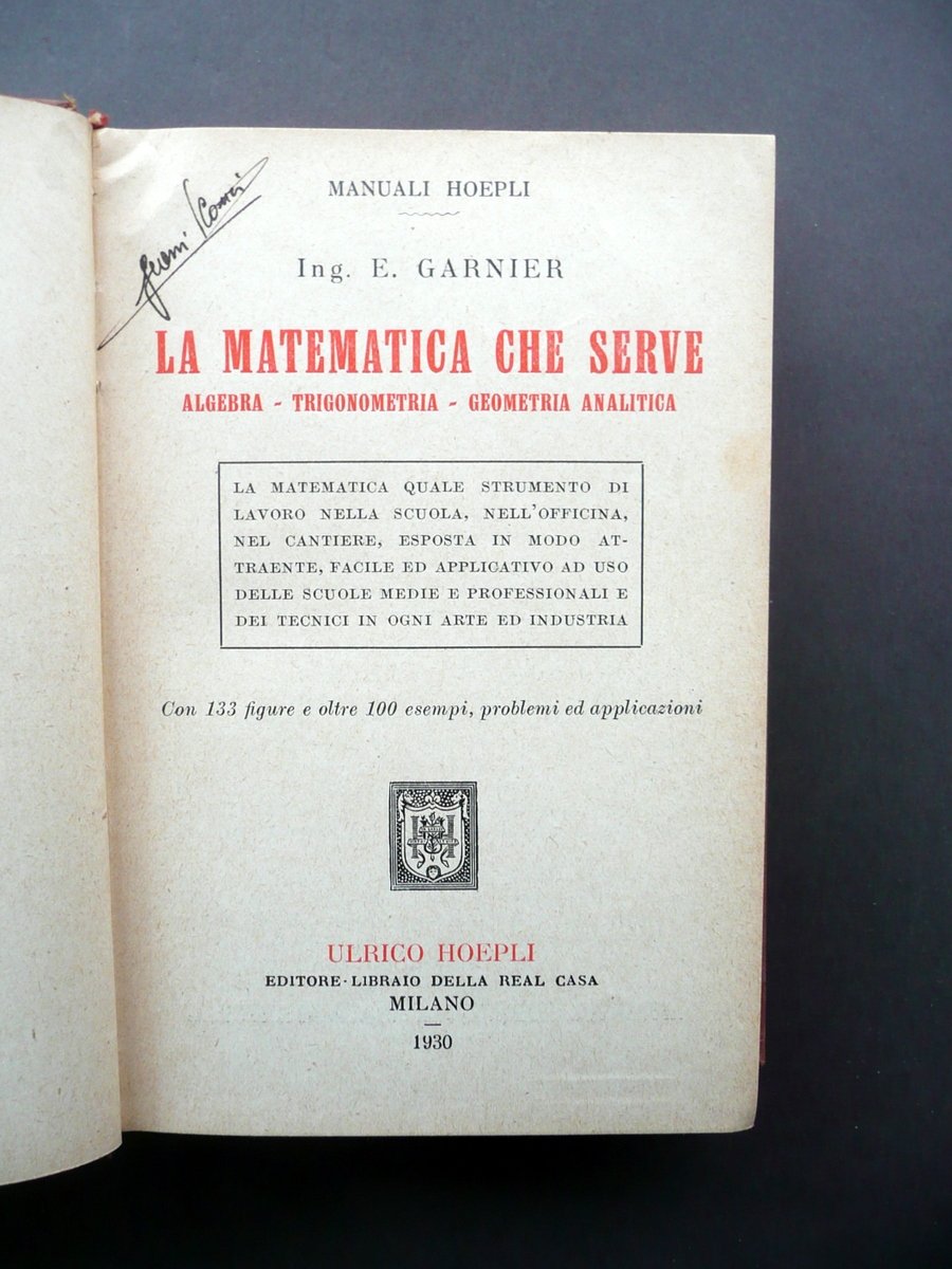 La Matematica che Serve Algebra Trigonometria E. Garnier Hoepli Milano 1930 | Libri antichi e moderni |