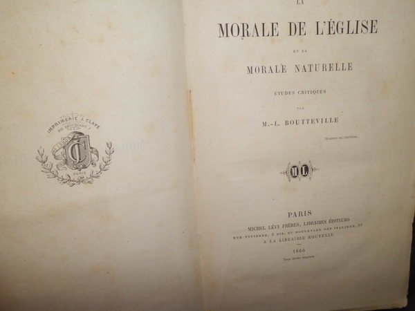 La Morale de l' Eglise et la Morale Naturelle | Libri antichi e moderni | Boutteville, Marc Lucien