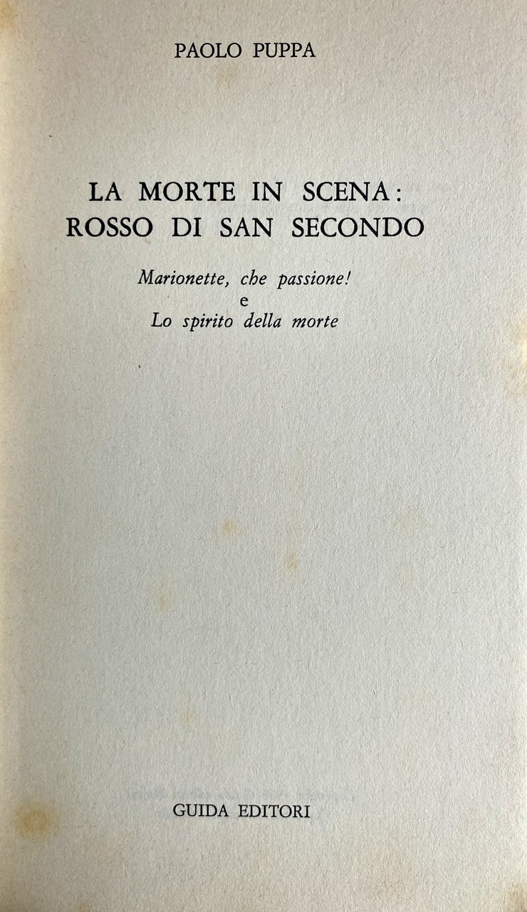 LA MORTE IN SCENA: ROSSO DI SAN SECONDO. (MARIONETTE, CHE PASSIONE!; LO SPIRITO DELLA MORTE) | Libri antichi e moderni | Paolo Puppa