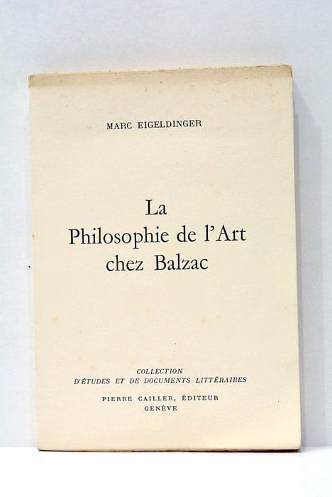 182 pages. 6 feuillets. (20x14cm). Cartonnage d'éditeur. Couverture légèrement brunie qavec petites taches sans gravité. Dso et coin un peu émoussés. Cet ouvrage de Marc Eigeldinger, publié à Genève en 1957, explore la conception de l'art dans l'œuvre de Honoré de Balzac, un des piliers de la littérature française du XIXe siècle. À travers une analyse minutieuse, l'auteur met en lumière les idées esthétiques et philosophiques qui sous-tendent les romans de Balzac, offrant ainsi une compréhension enrichie de son univers littéraire. Cette étude se situe dans un contexte d'après-guerre où la réflexion sur l'art et sa fonction dans la société connaît un renouveau. Papier légèrement bruni avec petites taches et signes de rousseurs sans gravité. Exemplaire partiallement non-coupé.