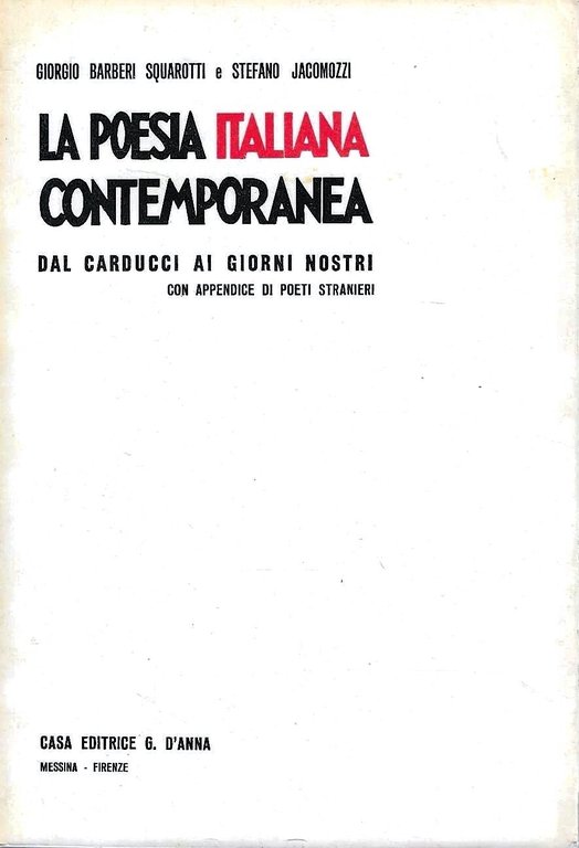 La poesia italiana contemporanea dal Carducci ai giorni nostri con appendice di poeti stranieri | Libri antichi e moderni | Barberi Squarotti, G. - Jacomozzi, S., ,Barberi Squarotti, G. - Jacomozzi, S.