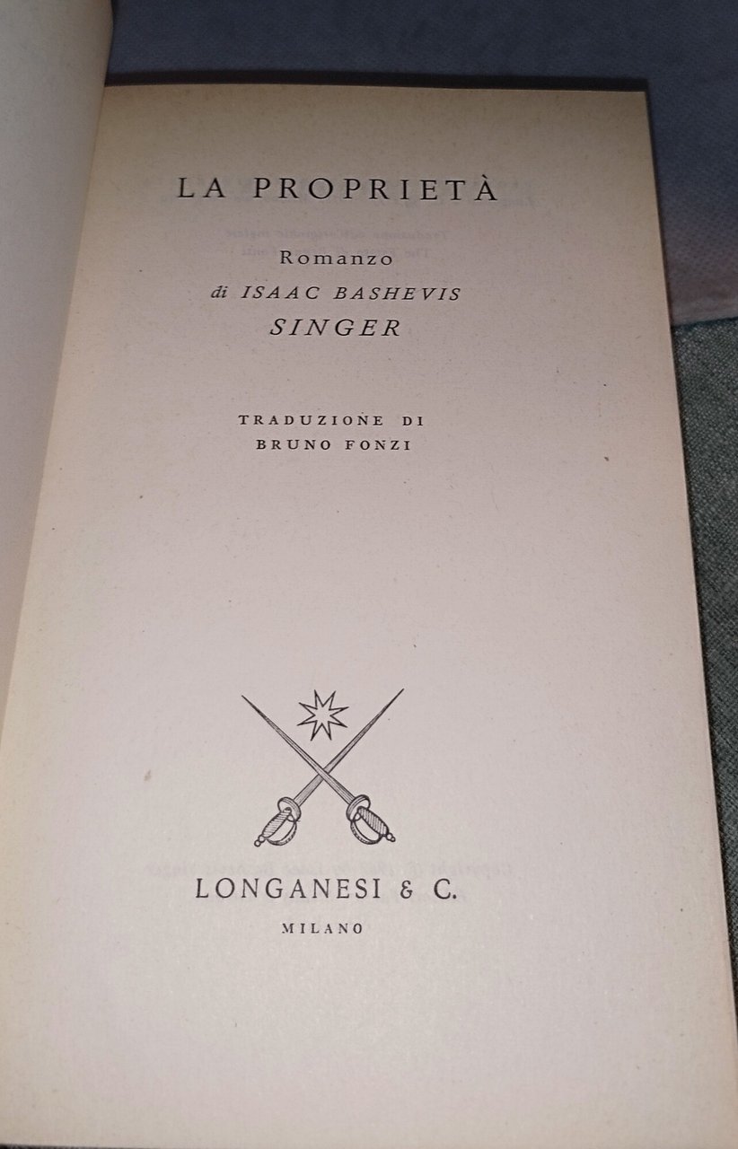 la proprietà isaac basheivis singer. , longanesi 1973 italiano, 452 °°