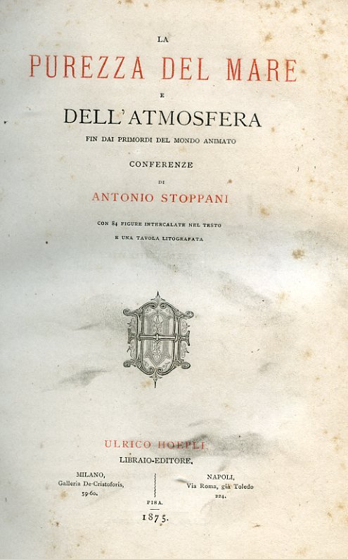 La purezza del mare e dell'atmosfera fin dai primordi del mondo animato. Conferenze. Con 84 figure intercalate nel testo e una tavola litografata | Libri antichi e moderni | Stoppani Antonio