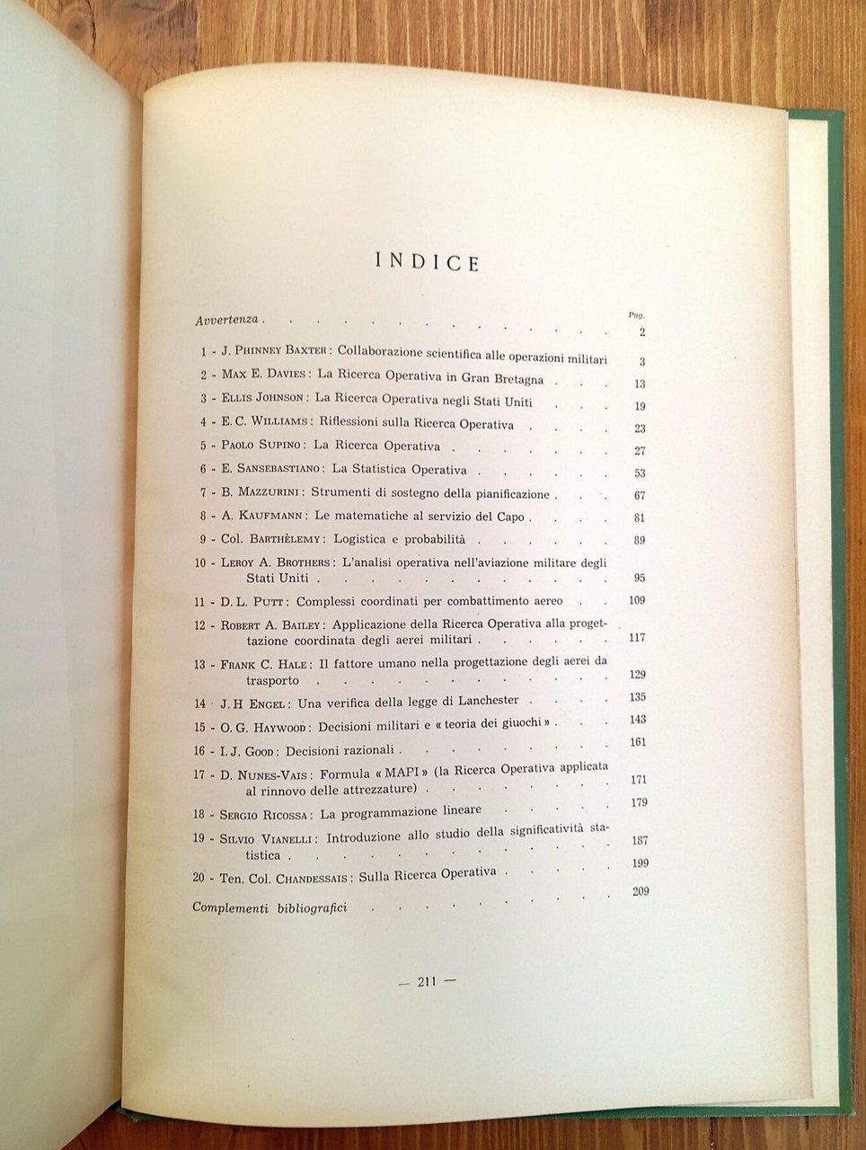"Stato maggiore aeronautica militare, Ufficio studi"; Quaderno di cultura n. 47. Edizione fuori commercio - Volume nella copertina rigida originale in tela verde, titoli in oro al piatto e al dorso, 211 pagine con figure in nero, schemi e grafici a corredo del testo. Indice consultabile nelle nostre immagini. Lievi segni del tempo, nel complesso ottimo esemplare di un'edizione di difficile reperibilità -- Raccolta di monografie sui diversi aspetti della Operational Research, la cui applicazione si rivela di somma importanza militare ai fini del più proficuo e redditizio impiego degli uomini e dei mezzi, in pace e specialmente in guerra. (Dall'avvertenza in apertura)